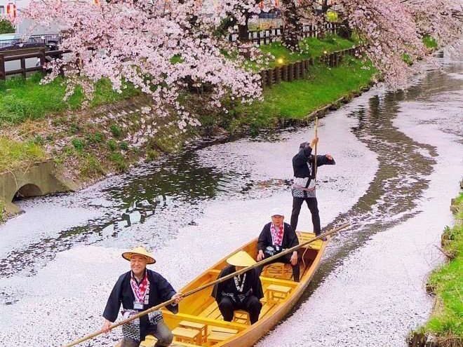 An open-top bus tour service specifically designed for viewing cherry blossoms in bloom, one of which operates in the Yamagata. This bus offers unique hanami experience without a roof, allowing passengers to see the beauty of the cherry blossoms up close and personal